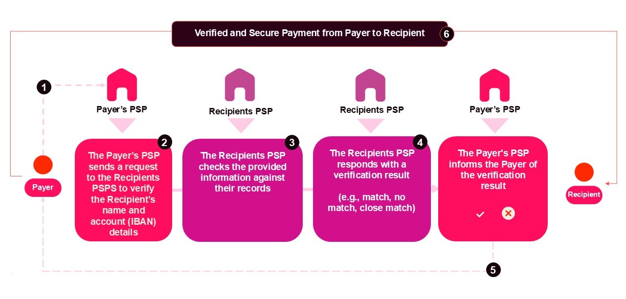 The result of this verification check is communicated to the payer’s PSP and the payer within seconds.